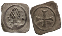 Pfennig ohne Jahr, Silber, Förschner 110, Abmessung = 12*14mm Gewicht 0,24g (Foto Münzhandlung Sonntag, Auktion 21, Los 521)