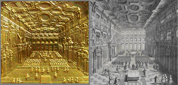 Die ausgezeichneten Stiche wurden aufgrund ihres Detailreichtums sogar als Vorlage zur Rekonstruktion des Goldenen Saales mitbenützt.