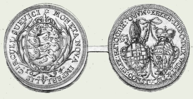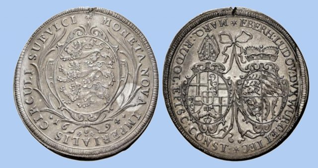Mit dem Ende der ‚Kleinen Kipperzeit‘ 1694 wurden von vielen Münzständen neue, gute Reichstaler ausgebracht. Auch der Schwäbische Kreis, einer der 10 Reichskreise, ließ Reichstaler prägen.