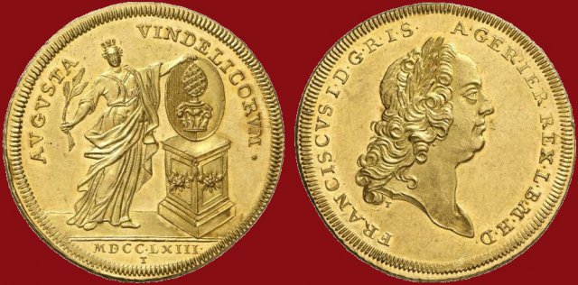 Vorderseite: AVGVSTA VINDELICORVM * , im Abschnitt MDCC.LXIII., darunter T