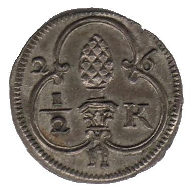 | Avers | In einem Dreipass das Stadtpyr; seitlich 1/2 - K, oben 2 - 6, unten ein Hufeisen |
