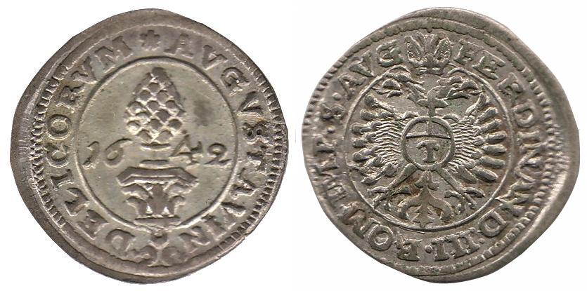 | Revers | FERDINAND III ROM IMP S AVG — Unter der Kaiserkrone der Doppeladler, auf der Brust den Reichsapfel mit der Wertzahl 1 |