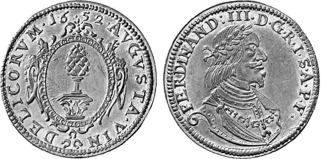 | Revers | FERDINAND III D G R I S A P F — Lorbeerbekränztes Brustbild von der rechten Seite. |