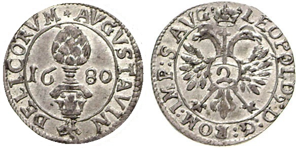 | Revers | LEOPOLD ' D G ROM IMP S AVG — Unter der Kaiserkrone der bescheinte Doppeladler, auf der Brust den Reichsapfel mit der Wertzahl 2 |