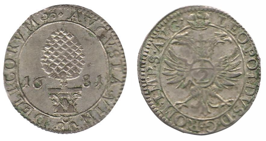 | Revers | LEOPOLDVS D G ROM IMP S AVG — Unter der Kaiserkrone der Doppeladler ohne Kopfscheine, auf der Brust den Reichsapfel mit der Wertzahl 2 |
