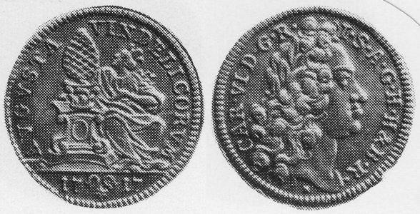 Ganzer Dukat mit entsprechendem Münzbild bekannt: Slg. Erlanger Nr. 1972 |