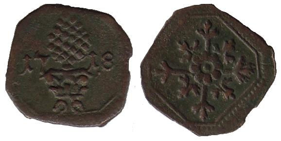 | Avers | Das Stadtpyr, zu dessen Seiten 17 - 18 ; unten zwei Hufeisen, auf der Seite des Vierecks, nicht wie bei den früheren überecks stehend. |
