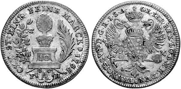 | Avers | wie der vorstehende Vierundzwanziger Nr. 634, nur CXX und 1763 |