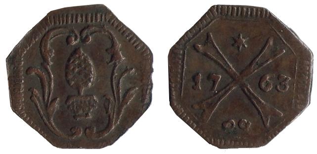 | Revers | Malteserkreuz, im oberen Winkel ein Sternchen, in den mittleren 17 - 63 , im unteren zwei Hufeisen. |
