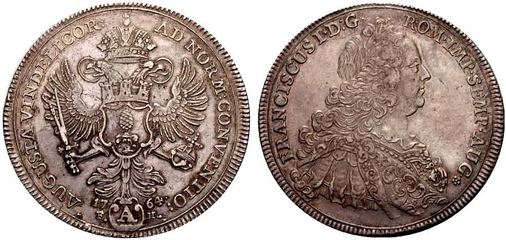 | Revers | wie vorstehender Taler, aber verzierter Überwurf und Umschrift endet AUG |
