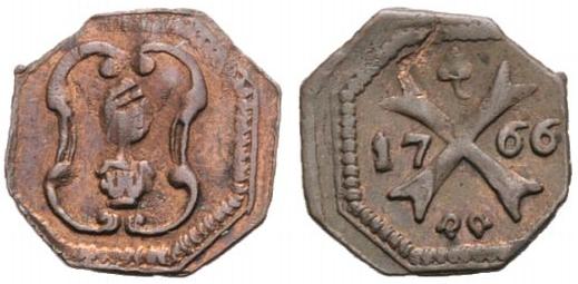 | Revers | Malteserkreuz, oben Kleeblatt, mittig 17 - 66, unten zwei Hufeisen |