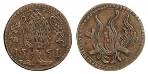 Brennholz- Zeichen 1551 aus Kupfer, Forster 438, Schmid 17, Durchmesser: 26mm