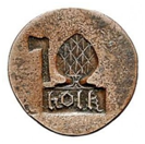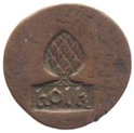 Einseitiges Holz-Zeichen ohne Jahr aus Kupfer, nicht in Forster oder Schmid beschrieben, Durchmesser: 21mm