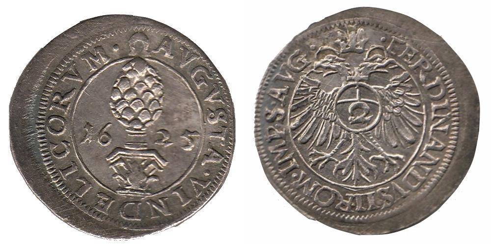 | Revers | FERDINANDVS II ROM IMP S AVG — Der bescheinte Doppeladler unter Kaiserkrone, auf der Brust Reichsapfel mit Wertzahl 2 |