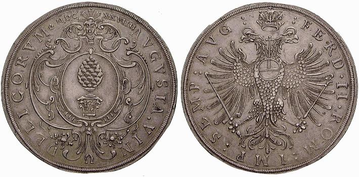 | Avers | AVGVSTA VINDELICORVM MDC - XXVIIII — Das Stadtwappen in reich verzierter Umrahmung; unten ein Hufeisen |