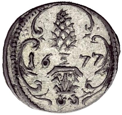 Avers | In einem unten offenen Dreipass das Stadtpyr, zu dessen Seiten 16 - 77 ; unten zwei Hufeisen. |