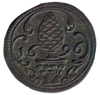 | Avers | In einem unten offenen Dreipass das Stadtpyr, zu dessen Seiten 16 - 96 . Unten zu den Seiten des Postaments je ein Hufeisen. |