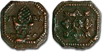 Avers | Das Stadtpyr, zu dessen Seiten 17 - 21 senkrecht auf der Quadratseite stehend, unten neben dem Postament je ein Hufeisen. |