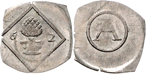 Avers | Das Pyr, zu dessen Seiten 6 - 2 über Eck stehend in einem Quadrate. |