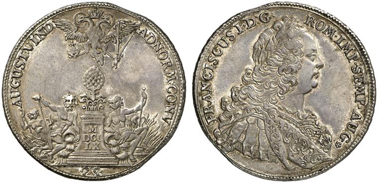 FRANCISCUS I D G - ROM IMP SEMP Aug — Lorbeerbekränztes Brustbild v. r. S. in verziertem Überwurfe. |