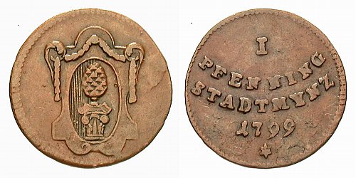 | Revers | (bogig) I PFENNING STADTMYNZ 1799 |