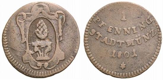 | Revers | (bogig) I PFENNING STADTMÜNZ 1801 |